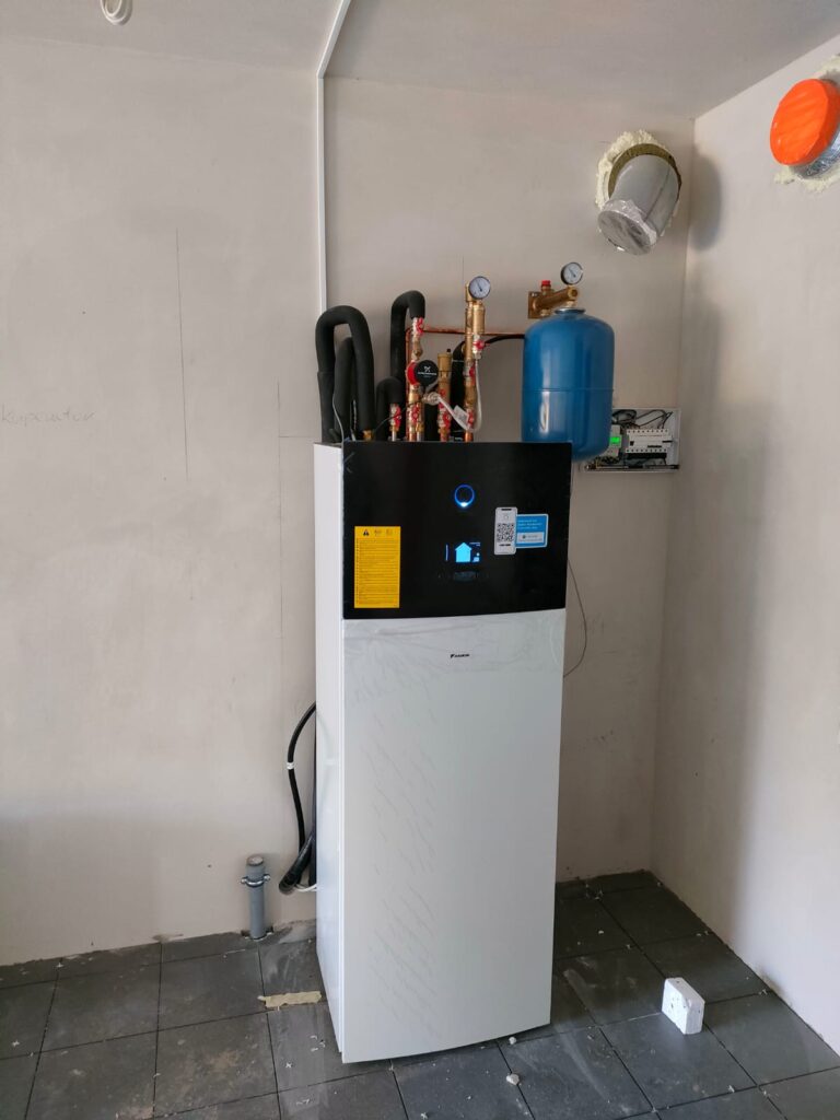 Zamontowane urządzenie: Pompa ciepła DAIKIN, jednostrefowa, niskotemperaturowa