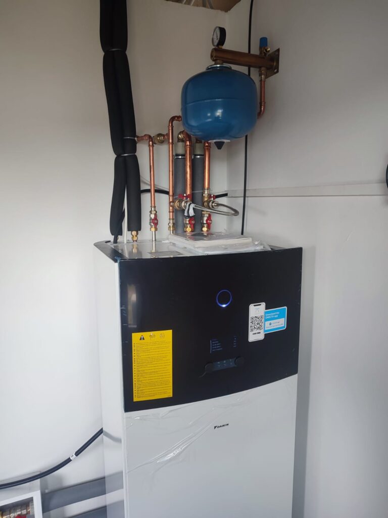 Zamontowane urządzenie: Pompa ciepła DAIKIN, jednostrefowa, niskotemperaturowa