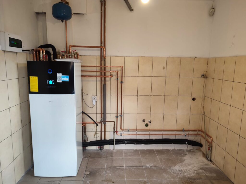 Zamontowane urządzenie: Pompa ciepła DAIKIN, dwustrefowa, niskotemperaturowa