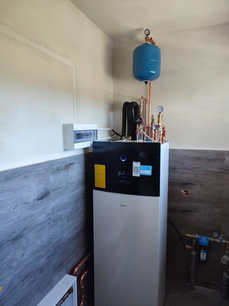 Zamontowane urządzenie: Pompa ciepła DAIKIN, jednostrefowa, niskotemperaturowa